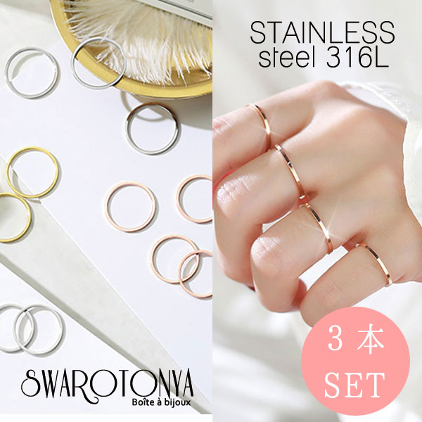 魅力的でシンプルなステンレスリング 【とてもお得な3本セット】 極細リングは重ねて着けてもとても可愛いですし、色んなサイズを持っていてもシンプルなので合わせやすくコスパ最高です★